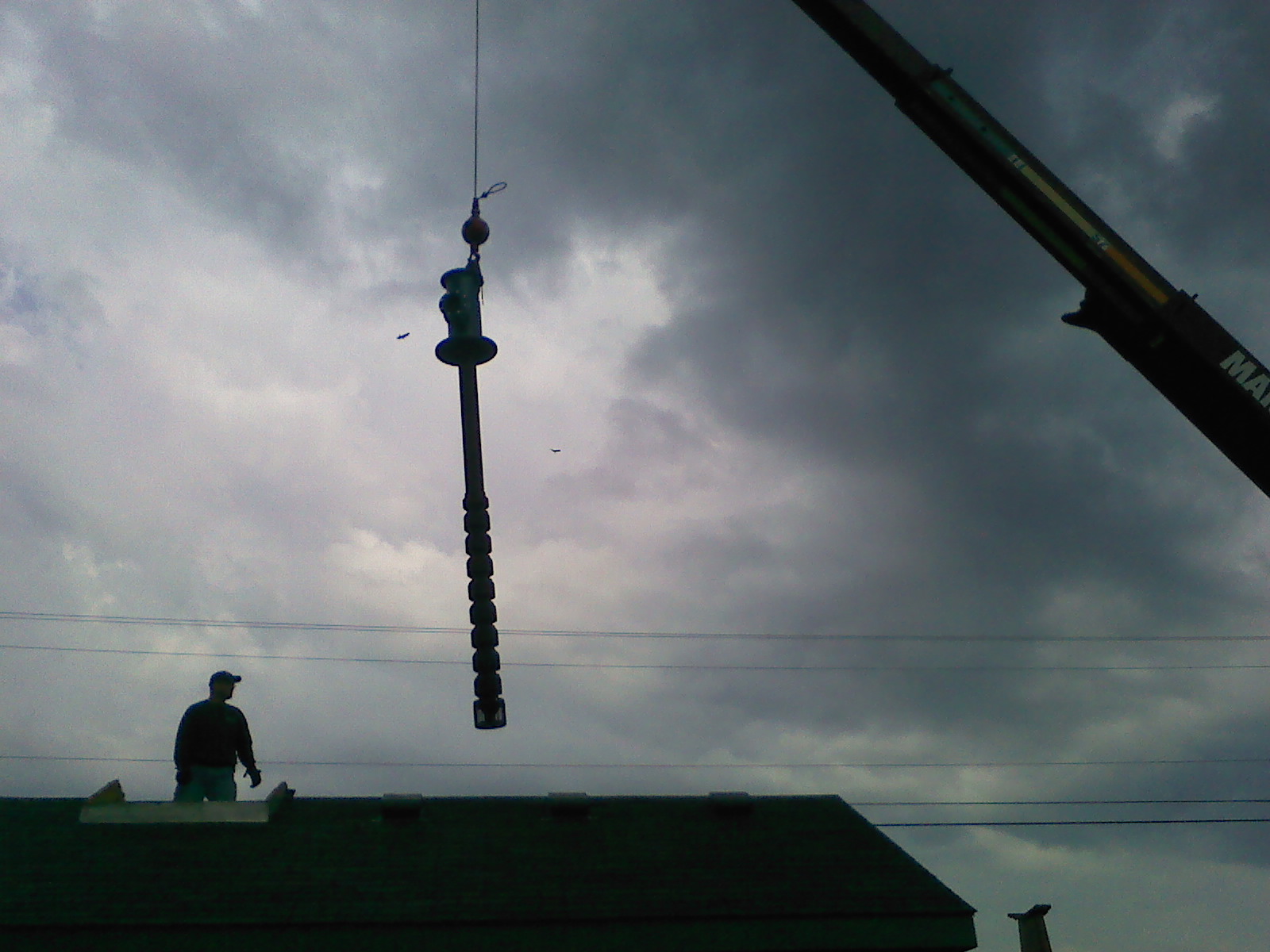 This is the crane that lifted the pumps from the flat bed trailer and lowered them into the pump house.